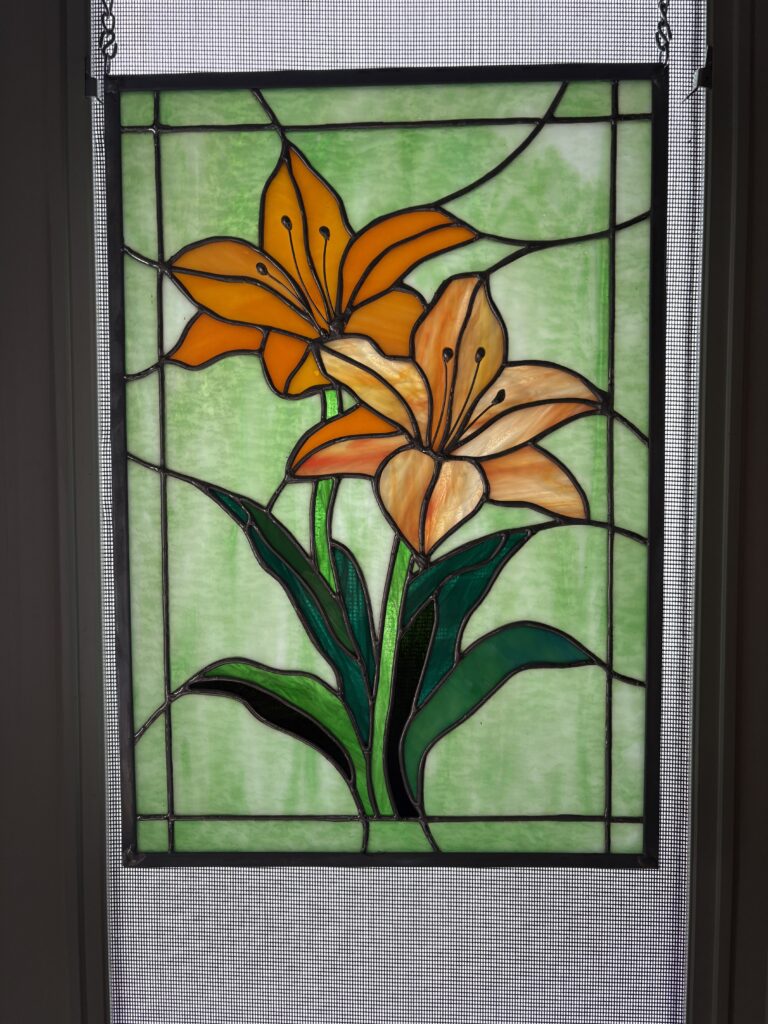Inspired by nature, Chris creates stunning stained glass pieces using the copper foil method, with a special love for organic, flowy shapes and florals. From delicate designs to eye-catching lamp shades (that somehow keep multiplying despite promises of “just one more”), each piece is thoughtfully crafted with an incredible attention to color. Chris finds so much joy in choosing just the right combination of glass—because the magic really happens when the light shines through.
